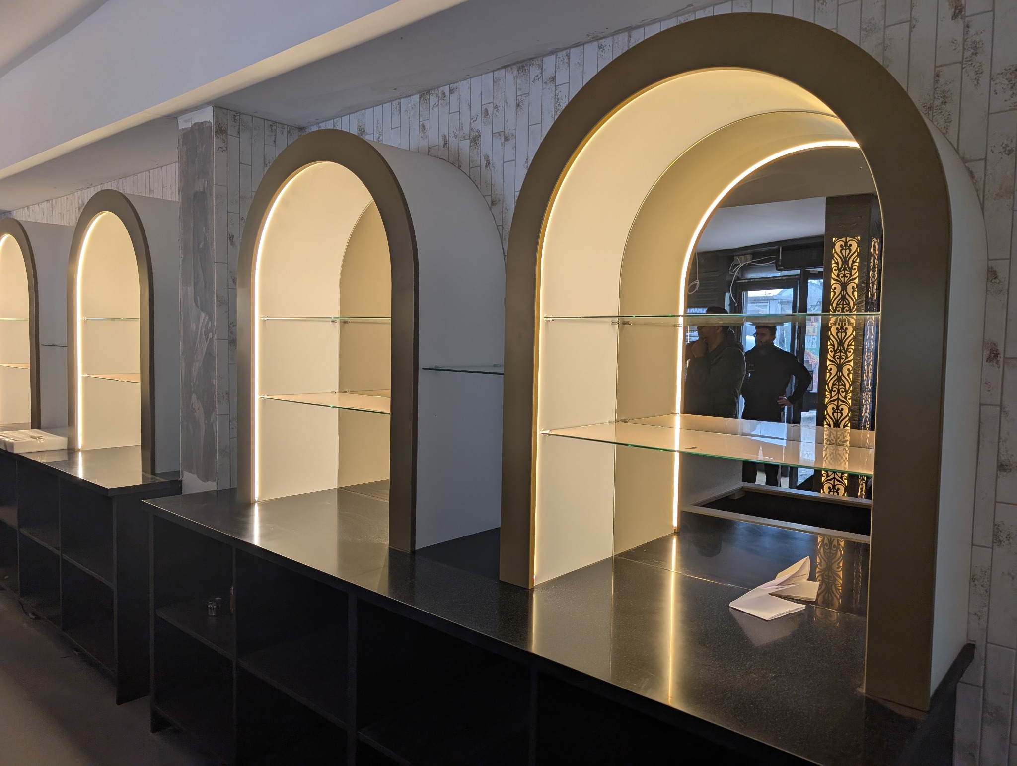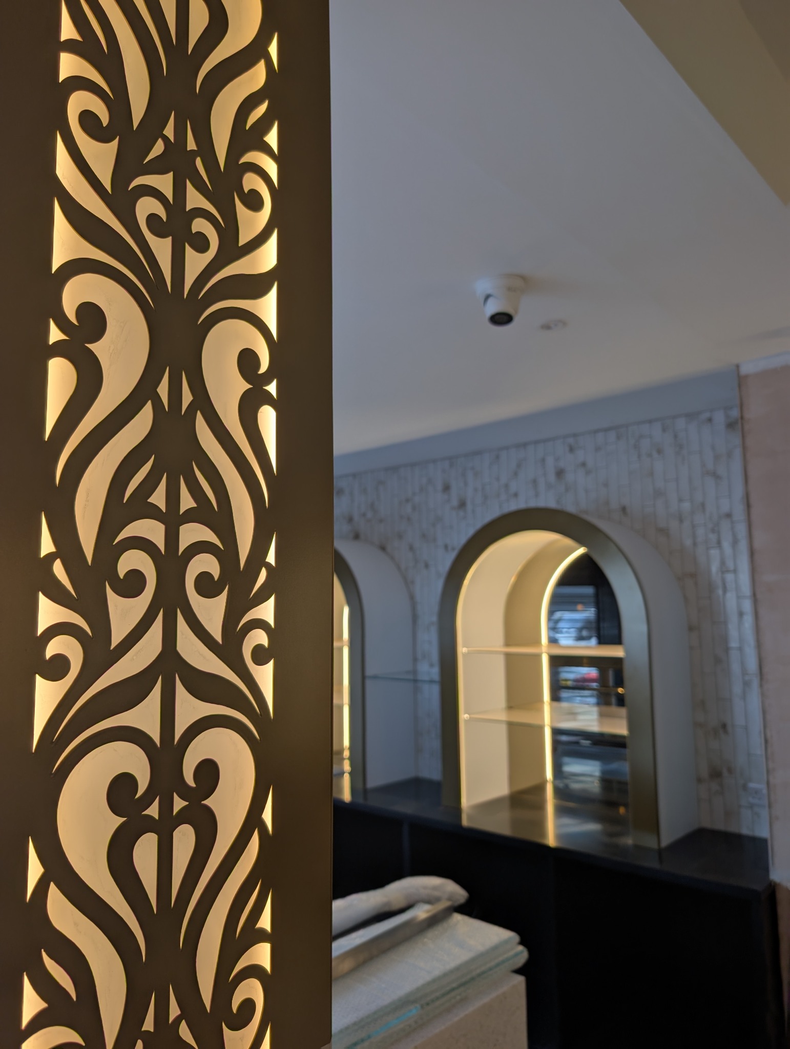 Custom-designed arches that add a unique architectural touch, framing key areas and creating a cohesive flow.